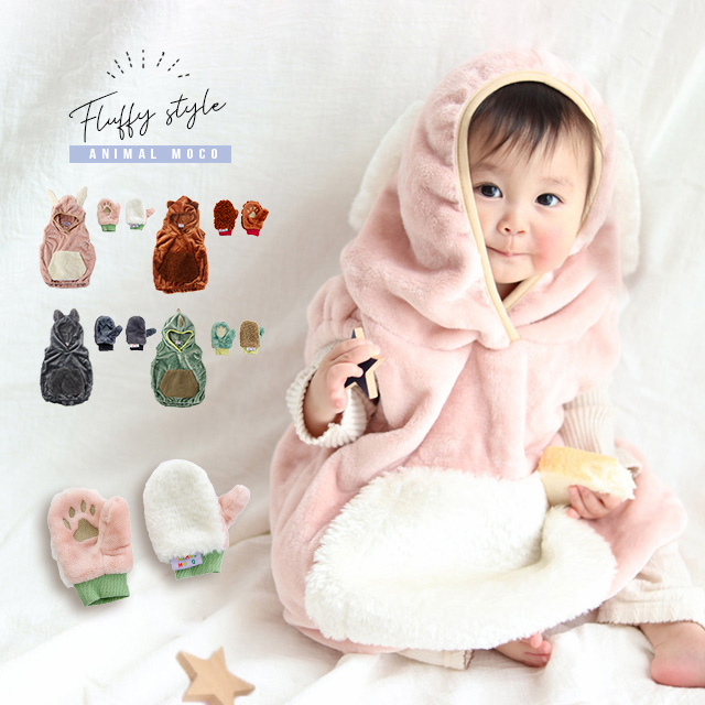 一度着たらやめられないフワフワ生地の、愛らしいアニマルベスト&ミトンセット。