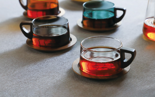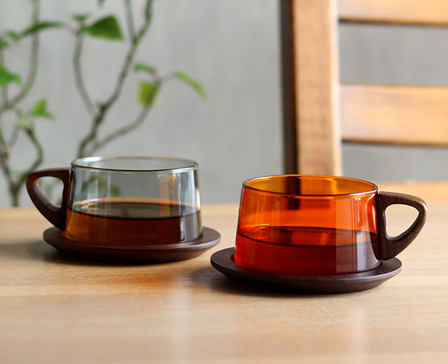 木の温もりとガラスの透明感を楽しむティーカップ