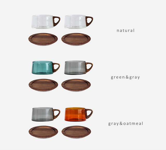 カップ:ホウケイ酸ガラス(耐熱ガラス)、ウォルナット(ラッカー仕上げ) コースター:ウォルナット(ラッカー仕上げ)