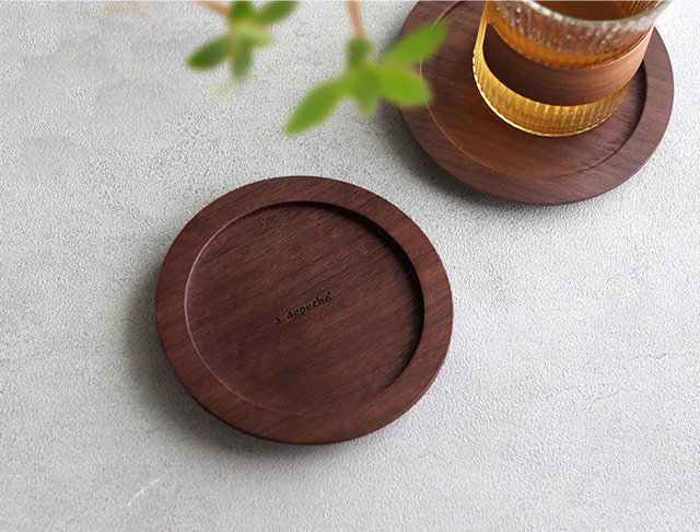 ウォルナットのやさしい感触、木目・色合いの自然なぬくもりが魅力のコースター。