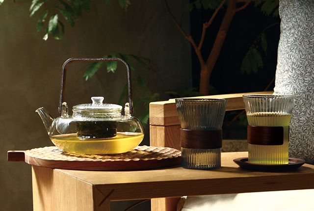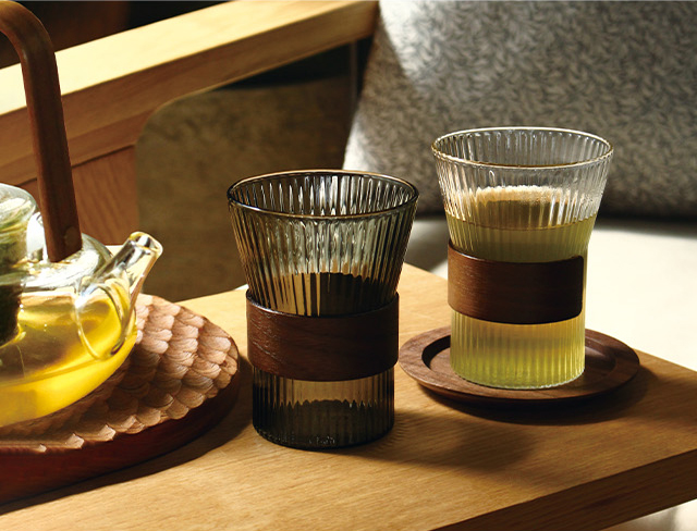 木の温もりとガラスの透明感を楽しむティーウェア