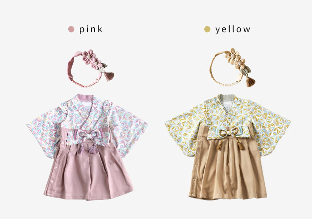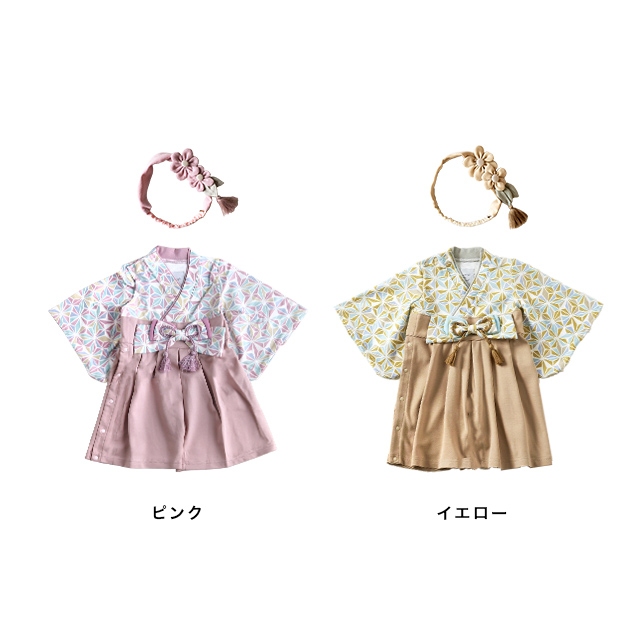 女の子の「ハレの日」の衣装にぴったりな、袴ロンパース&ヘアバンドの2点セットです。