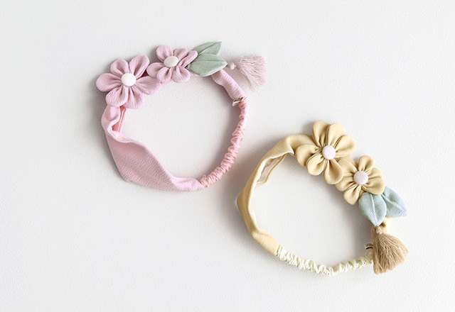 つまみ細工風のデザインが可愛いヘアバンド