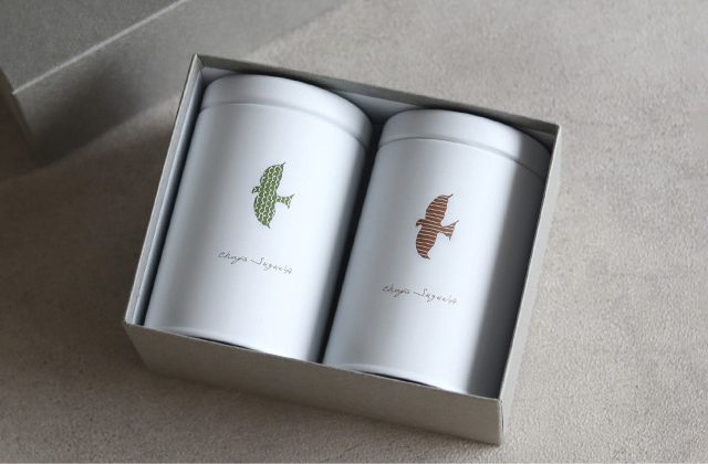 さらに煎茶とほうじ茶の茶葉をそれぞれ1缶ずつセットにしました。