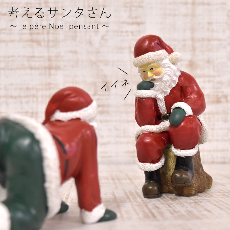 考えるサンタ サンタクロース フィギュア クリスマス シュール 考える人 飾り 置物 サンタ かわいい カフェ風 小さい インテリア 雑貨