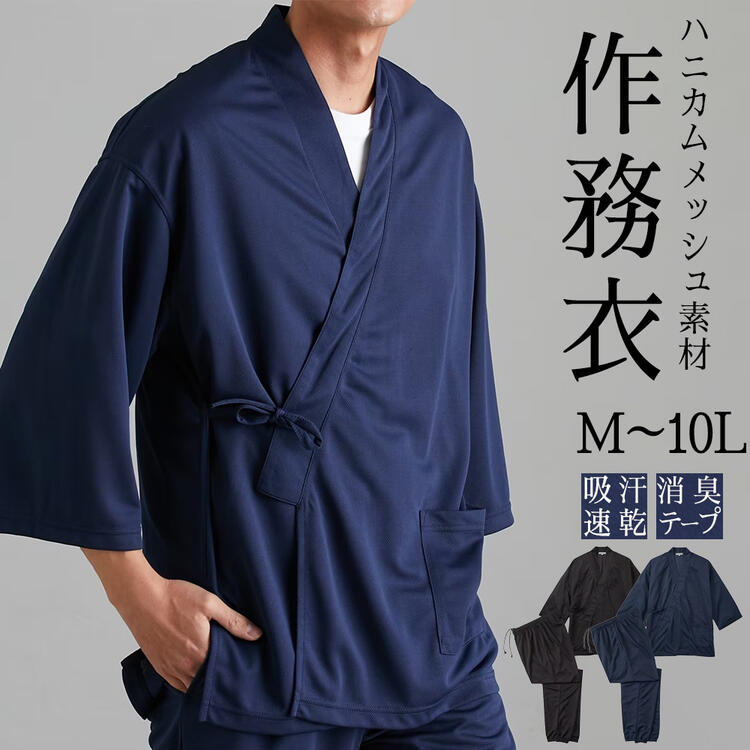 作務衣 夏用 和服 部屋着 吸汗速乾 消臭テープ付き ハニカムメッシュ さむえ M-10L 大きいサイズ メンズ リラックスウェア ニッセン