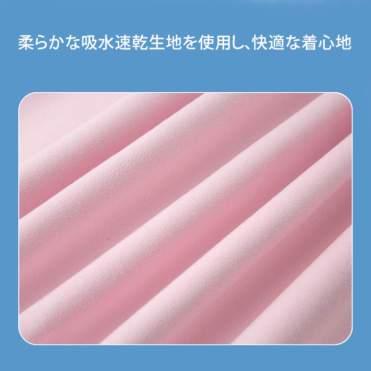 柔らかな吸水速乾生地を使用し、快適な着心地。