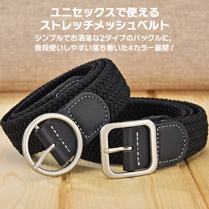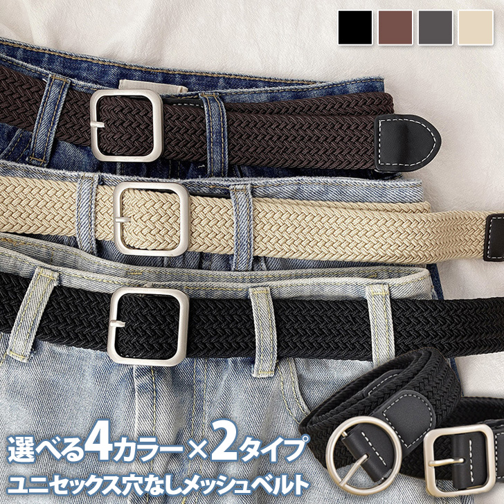 ユニセックスで使える穴なしストレッチメッシュベルト