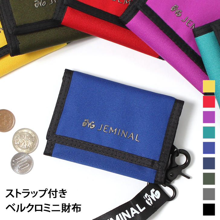 ストラップ付き メタルロゴ ベルクロ ミニ財布 子供 キッズ ジュニア 男の子 男子 メンズ 保育園 幼稚園 小学生 ミニウォレット 三つ折り財布 ナイロン ネックストラップ 首掛け ベルクロテープ バリバリ