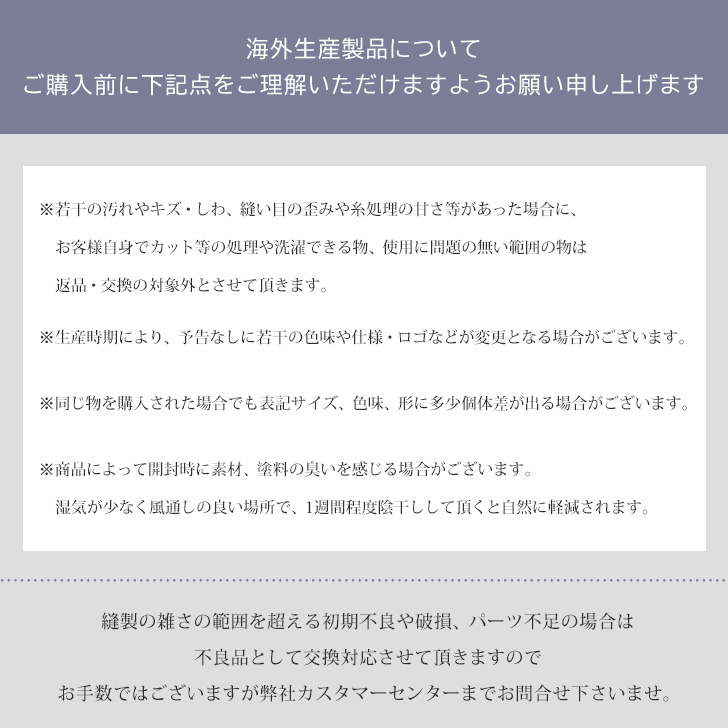 ※海外生産となるため若干の汚れやキズ、糸処理の甘さ等はご容赦ください。