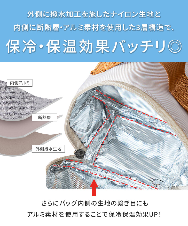 内側に断熱層・アルミ素材を使用した3層構造で、