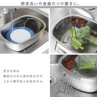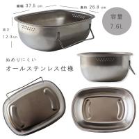 オールステンレス仕様でぬめりにくく使い終わった後に立てて中の水切りもできるから衛生的に使えます。作業台にあげても場所をとらず省スペースで収納できます。深さがあるので容量はたっぷり。底足付きなのでシンク内の水の流れを妨げません。野菜洗いや食器のつけ置きに。余分な水は側面の穴から流れ出るので上から物があふれ出ません。スタンド付きで立てて水切りができます。作業台に置いても邪魔にならないサイズです。