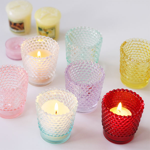 綺麗な色目のガラスのキャンドルホルダーです♪ティーライトのキャンドルにピッタリのサイズですよ。キャンドルはもちろん、ポプリや小物を入れても可愛いですね。キュートな5色を揃えてみました。コップ型のグラスは、キャンドルを無駄なく燃焼してくれるんですよ!!是非セットで使ってみて下さいね!