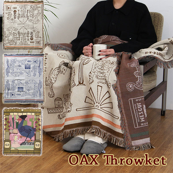 メキシコ・オアハカの民芸・ウッドカービングをモチーフにデザインされたスローケット。ポリエステルの耐久性とコットンの通気性の両方の利点を合わせて持っているポリエステルコットン生地。少し厚みがありながら艶感があり触り心地の良い通年お使いいただける生地感となっています。ソファやベッドにサラッと掛けて、膝掛けとして、鮮やかな色合いをいかしてアートとして壁面への装飾として斬新な使い方など様々にお部屋を彩ります。