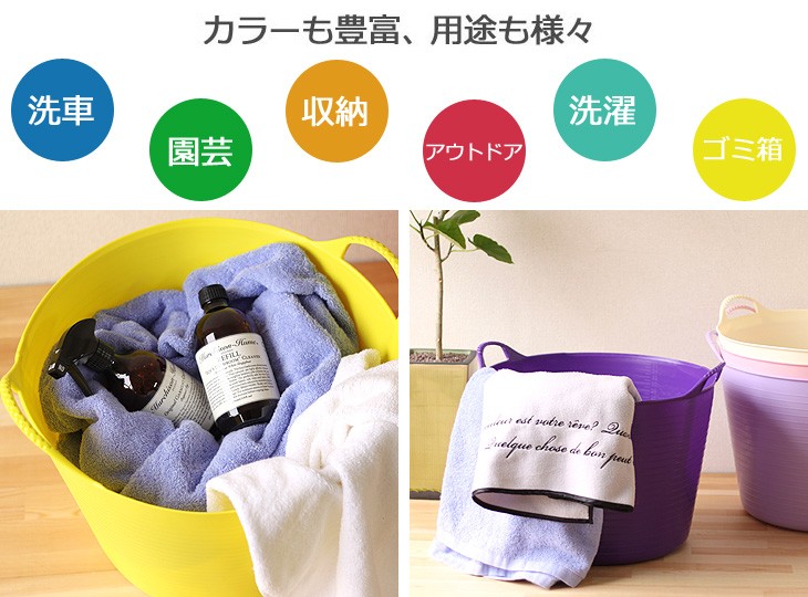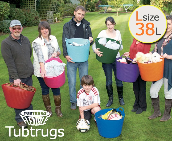 万能コンテナ、タブトラッグスのLサイズ。容量38リットルの頼もしいサイズです。洗濯物やおもちゃ収納、洗車や園芸、アウトドア等使い方いろいろ!