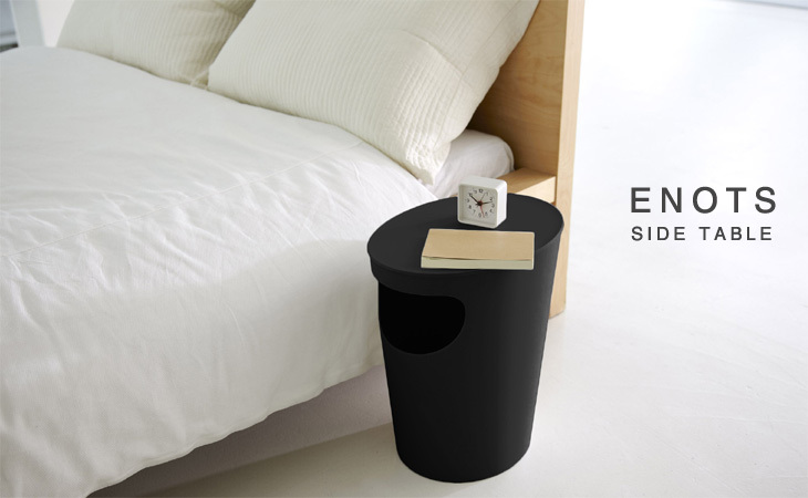 インテリアとしてさりげなく、しかし存在感のあるシリーズ『ENOTS-エノッツ-』。ベッドルームやリビングルームなど、くつろぐ場所に置いて使えるサイドテーブルです。収納やダストボックスとしても使えます。やわらかなフォルムとカラーがインテリアに優しくなじむ、モダンファニチュアです。