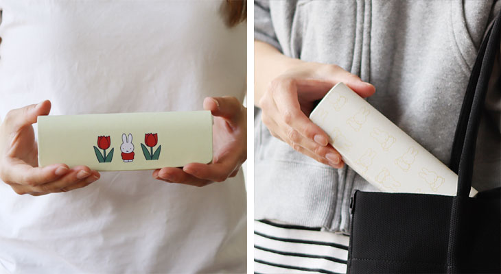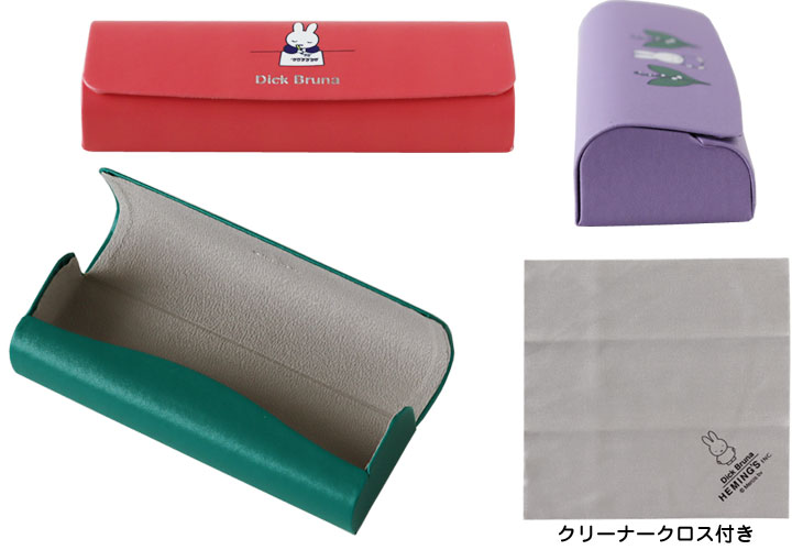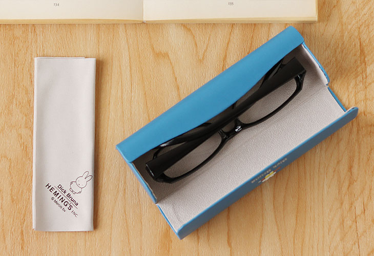 滑らかな合皮の手触りが高級感と落ち着いた雰囲気を感じさせる「DickBruna」のキャリングメガネケース。出し入れしやすく、かさばらず、持ち運びに便利なスリムタイプのメガネケースです。内側は起毛素材でメガネを優しく保護、ミッフィーのプリント入りのクリーナークロスが付いているのも嬉しい一品♪フタ部分中央にマグネットが付いているのでパチッとしっかり閉じてくれます。