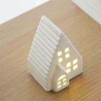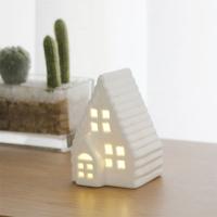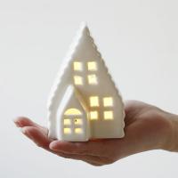 光沢感ある磁器のハウス型のLEDライトは、窓から漏れる灯りで暖かい気分にさせてくれます。