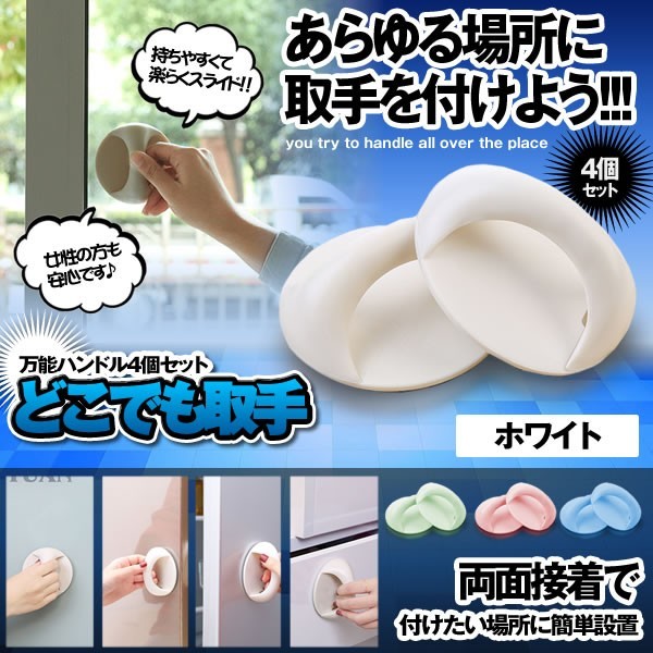 丸型どこでも取手 ホワイト4個セット フック 窓 扉 ノブ 手すり 持ちて 簡単 便利 4-DOKOTOTE-WH
