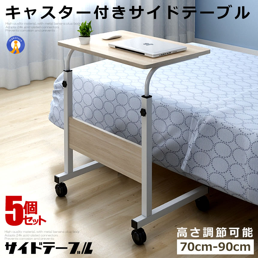 5個セット サイドテーブル ベッド キャスター デスク ナチュラル 机 キャスター付き サイド テーブル 高さ 簡単操作 省スペース 調整 マルチ PC GUTARA-NA