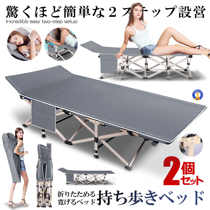 コット 折りたたみベッド 2個セット 持ち歩きベッド グレー コンパクト 軽量 シングル 組立不要 収納袋付 簡易 介護 キャンプ 仮眠 登山 アウトドア MOTIABE-GY
