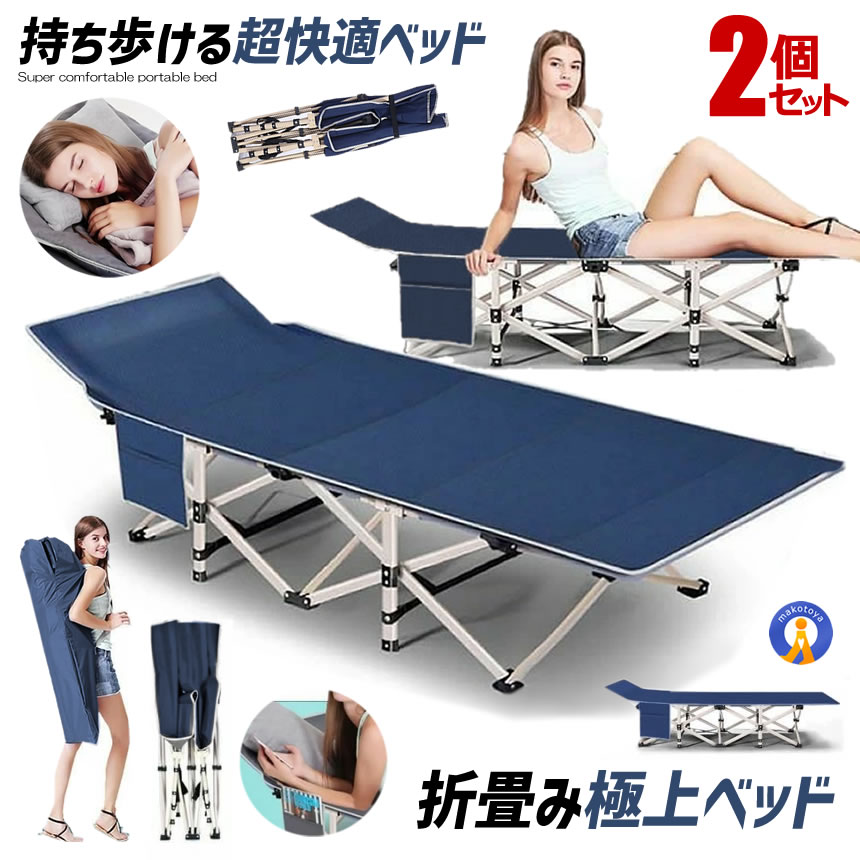 2個セット 持ち歩きベッド ブルー 折りたたみベッド コンパクト 軽量 シングル 組立不要 マットレス 収納袋付き 簡易 介護 キャンプ 仮眠 登山 MOTIABE-BL
