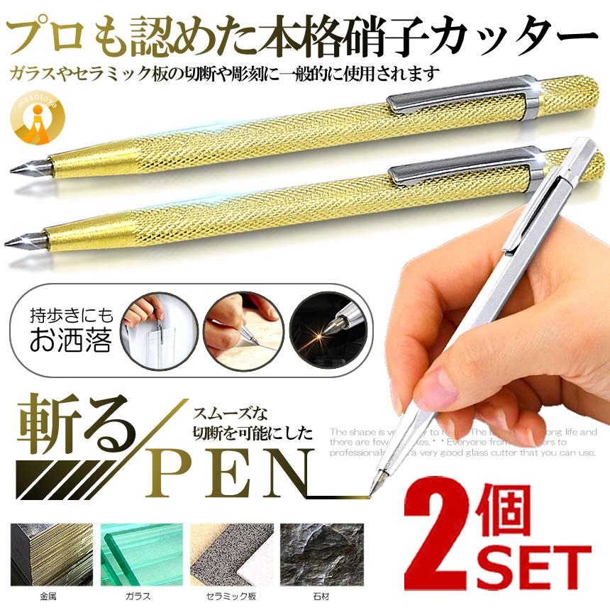 2個セット ガラスカッター ペン型 プロ用 工具 DIY アート ガラス切り 硝子カッター レタリング 彫刻 切削 金属 タイルカッター ガラス細工 斬るペン CHOKOKA