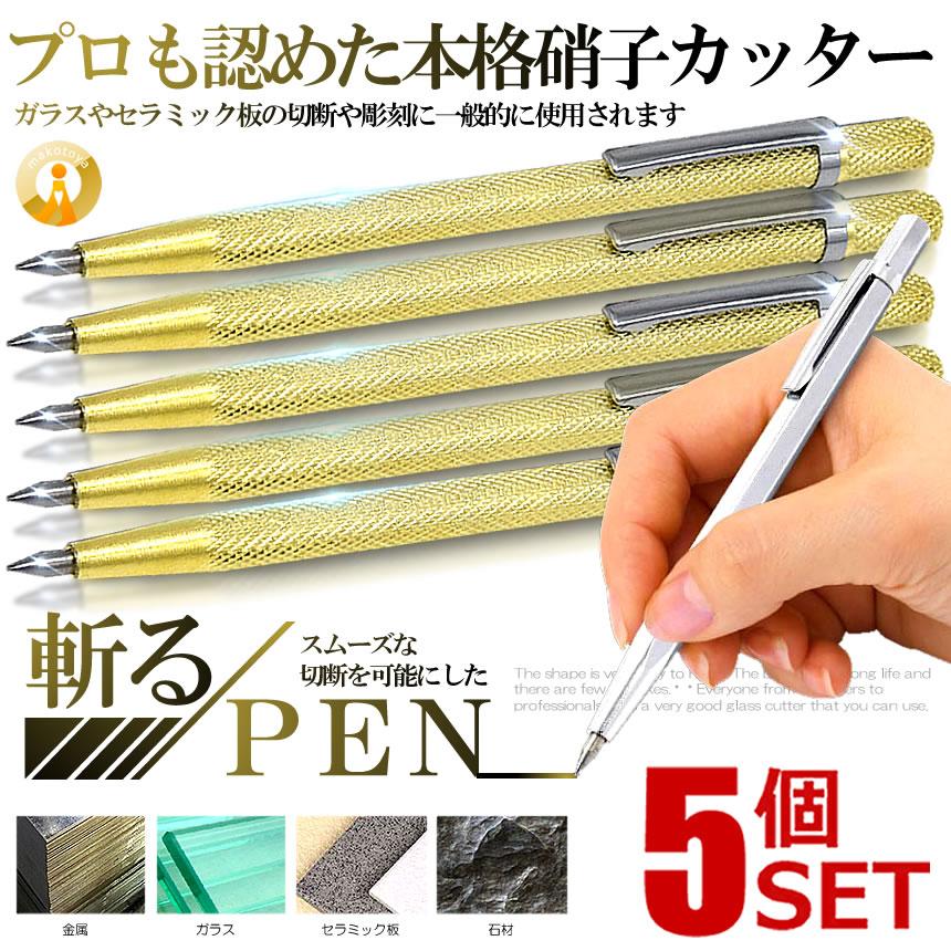 5個セット ガラスカッター ペン型 プロ用 工具 DIY アート ガラス切り 硝子カッター レタリング 彫刻 切削 金属 タイルカッター ガラス細工 斬るペン CHOKOKA
