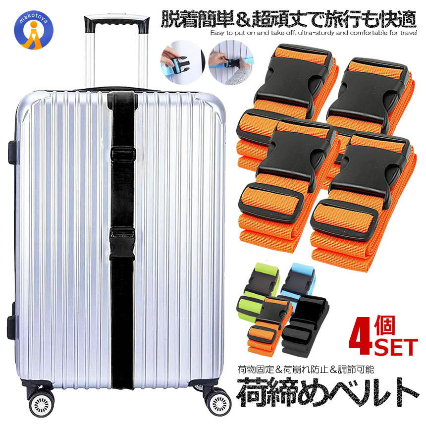 スーツケースベルト 4本セット バッグとめる 荷崩れ防止 旅行 トラベルグッズ キャリーバッグベルト トランクベルト 固定 ストラップ 荷締め 目印にも SUTUNIZI