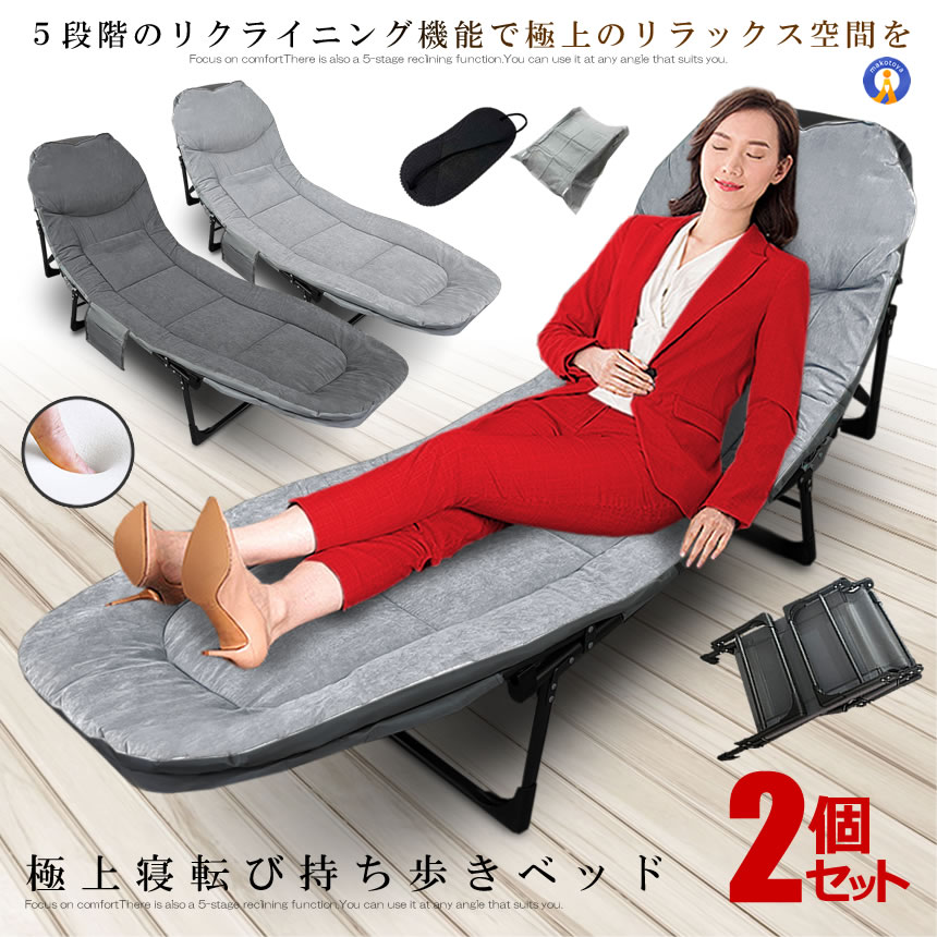 2個セット ベッド 折りたたみベッド リクライニング チェア シングル ベッド 5段階 寝転び 持ち歩き クッション 収納 チェア アウトドア GONEMOMO
