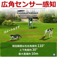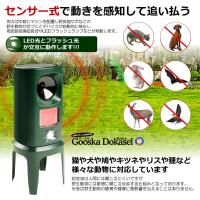 超音波動物撃退器は超音波の原理を利用して野生動物を刺激し不安を感じて逃げさせます。センサー式で動きを感知して追い払う例えば中庭にマシンを配置し野良猫や犬などの野生動物が近づくとデバイスが自動的に検出し周波数変換超音波やLEDフラッシュランプなどが発動します。超音波は人間には聞こえにくいですが野生動物には敏感に聞こえ反応する仕組みとなっております。※音は野生動物の聴覚や健康に悪影響を与えることはありません。ソーラーパネル搭載でバッテリーが切れる心配不要上面に太陽光パネルが搭載されており昼間に太陽の光で自動充電します。付属品本体x1(約8x22x8cm 横x縦x奥行)バッテリー電池3本内蔵(800mAh 1.2vx3本)USB充電ケーブルx1(約45cm)英語説明書付属x1送料無料