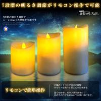 揺らめきモード&通常モードリモコンで簡単操作できる2種類の点灯モード採用しました。炎のようにゆらゆら揺れる明かりを見つめながらお休み前にリラックスされるのもお勧めです。7段階の明るさ調節がリモコン操作で可能7段階の明るさ調節でシーンに応じた使用が可能です。リモコンで簡単操作付属のリモコンで明るさ調整タイマーを操作することが出来ます。火を使わないので安心&安全小さなお子様がいらっしゃるご家庭でも安心してお使い頂けます。※単4電池は付属しておりません。リモコンの電池は付属しております。一つのキャンドルに対して単四電池3本が必要です。※距離が遠すぎると点灯しない場合がございます。送料無料