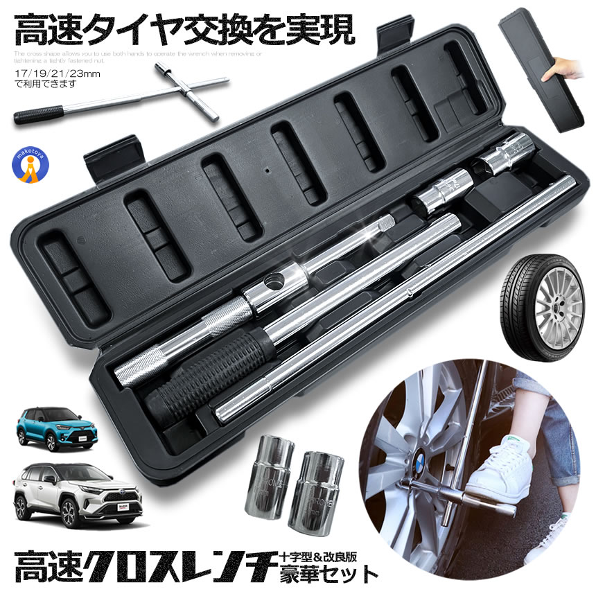 クロスレンチ 自動車 車 十字レンチ メンテナンス タイヤ タイヤ交換 分解式 T字 十字 空転式 4SETRENCHI