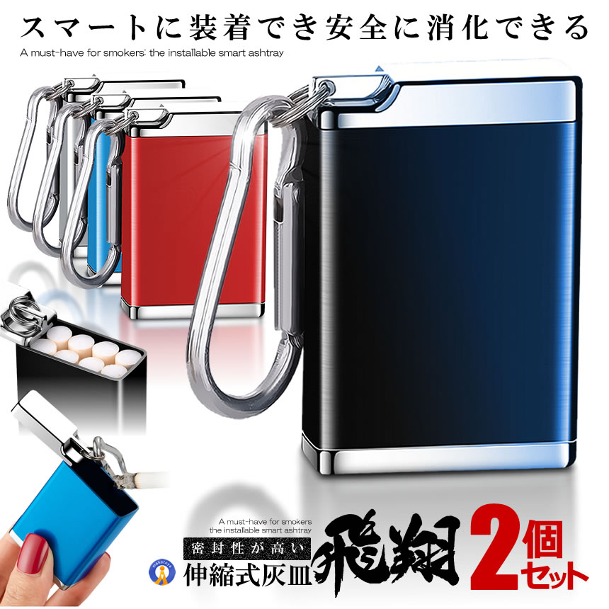 2個セット 携帯灰皿 カラビナ付き 吸い殻入れ ポータブル アッシュトレイ 金属製 フタ付き 小型 軽量 MINIHAIZARA
