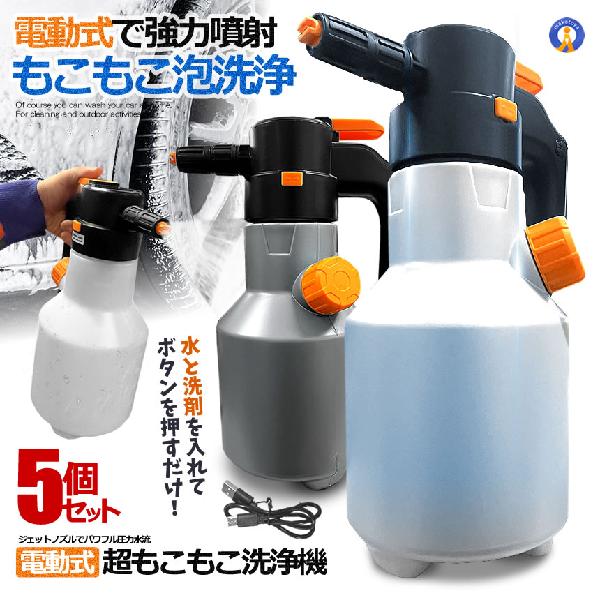 5個セット 電動式 ハンディ 高圧洗浄機 泡 噴霧器 手動式 泡洗車 2L 洗車 洗浄器 高圧 フォームガン PAWAPWA