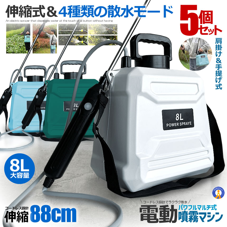 5個セット 噴霧器 電動 8L 大容量 充電式 電動 88cm 伸縮式 噴霧器 肩掛け式 バッテリー式 日本語説明書つき WATERHELP