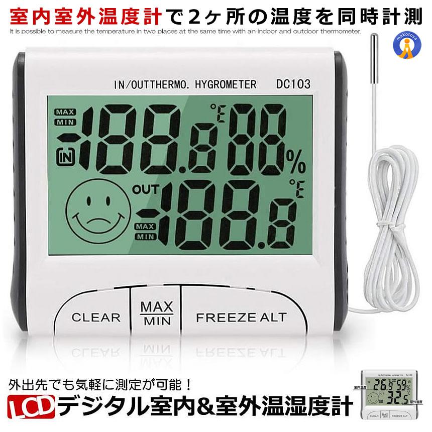 室内室外温度計で2ヶ所の温度を同時に測ることが可能です。電源は電池で動くので簡単に持ち運びができます。特長:・屋内&屋外の温度表示、屋内湿度表示・屋内&屋外温度のMAX/MIN値のメモリー・霜点アラーム商品サイズ:82× 70× 20mm重さ:80g温度測定範囲:-10℃〜50℃(+14°F〜+122°F)湿度測定範囲:10%RH〜99%RH測定誤差:±1℃(℃)使用電池:LR44 ボタン電池×1※仕様、デザイン等は予告なく変更する場合がございます。※電池は到着時裏蓋ホルダー内に収納されている為、ボタン電池を設置してご利用下さい。送料 無料※北海道は540円、離島地域及び沖縄県は970円にて承ります。