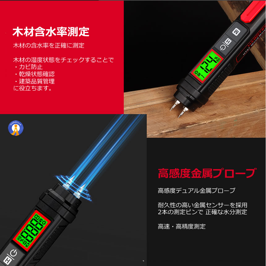 木材水分計 デジタル含水率計 水分測定器 DIY 建築 薪 木材 壁 床 レンガ 湿度測定 高精度 7素材対応 HT67