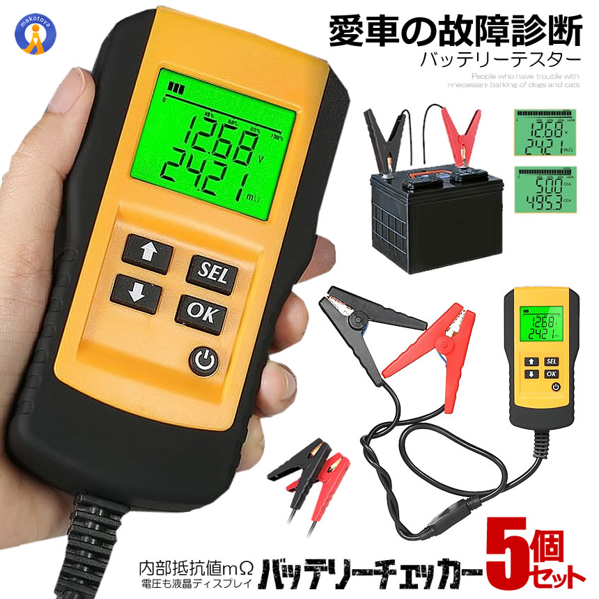 5個セット バッテリーテスター バッテリーチェッカー デジタル 診断 故障 車 自動車 カー用品 メンテナンス 電圧 テスタ 12V蓄電池 CCA 測定 電流 12V CHECKERS