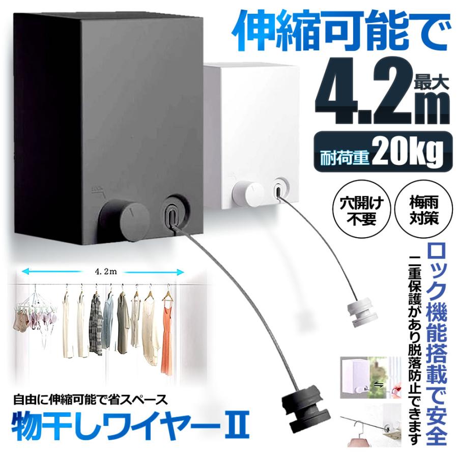 室内物干し 耐荷重20KG 物干しワイヤー 全長4.2M 自由伸縮可能 穴開け不要 梅雨対策 花粉 洗濯ハンガー 省スペース 洗濯グッズ MODAMONO