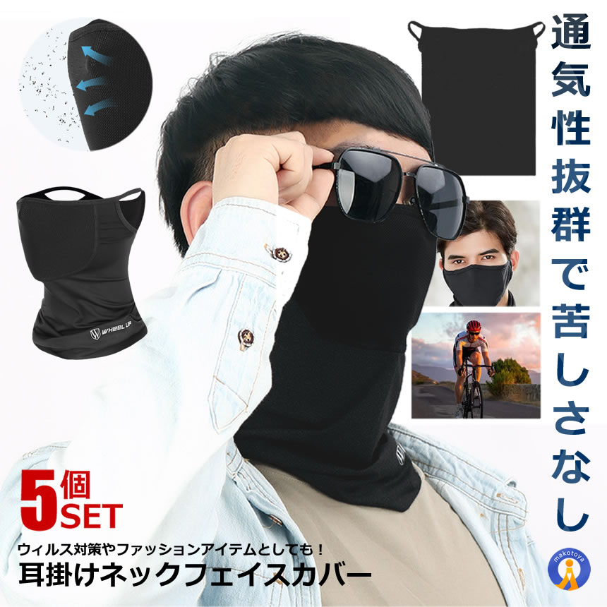 5個セット フェイスカバー 耳掛け UVカット 男女兼用 接触冷感 ツーリング 冷感 アウトドア バイク 通気性 スポーツ 屋外作業 登山 サイクリング NECKFACEC