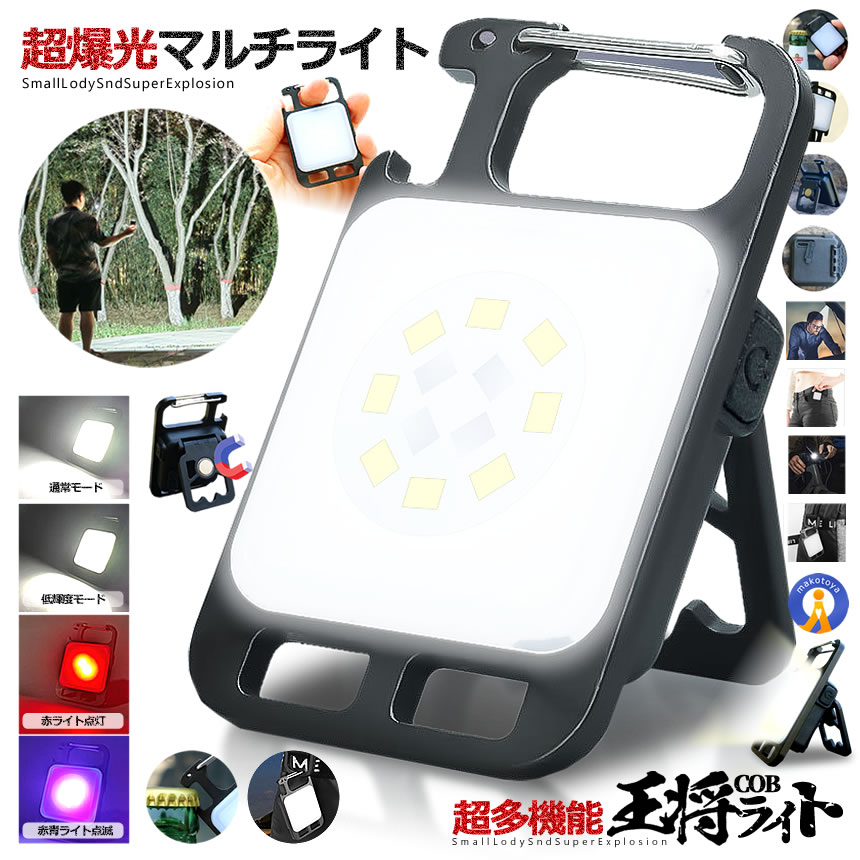 LEDライト 小型 充電式 マルチ カラビナ 栓抜き 作業灯 マグネット 防水 点灯 赤ライト 防水 懐中電灯 点滅 COB 投光器 登山 王将 磁石 爆光 ライト OUSHOU