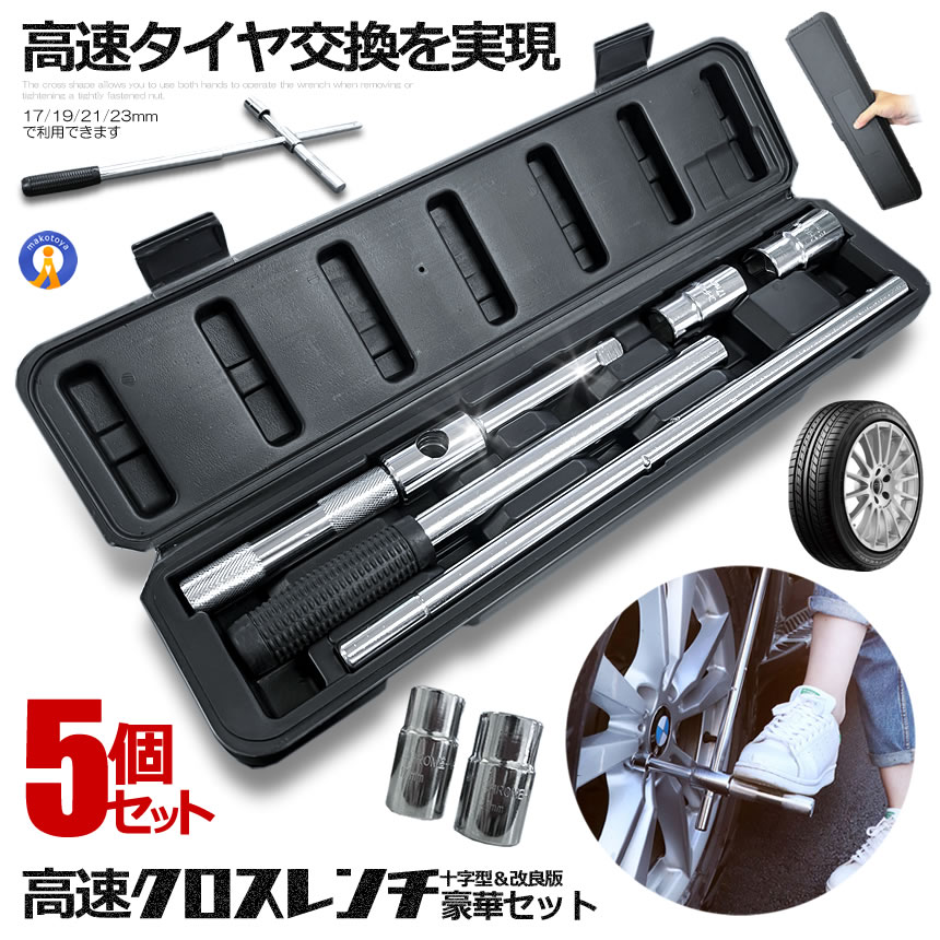 5個セット クロスレンチ 自動車 車 十字レンチ メンテナンス タイヤ タイヤ交換 分解式 T字 十字 空転式 4SETRENCHI