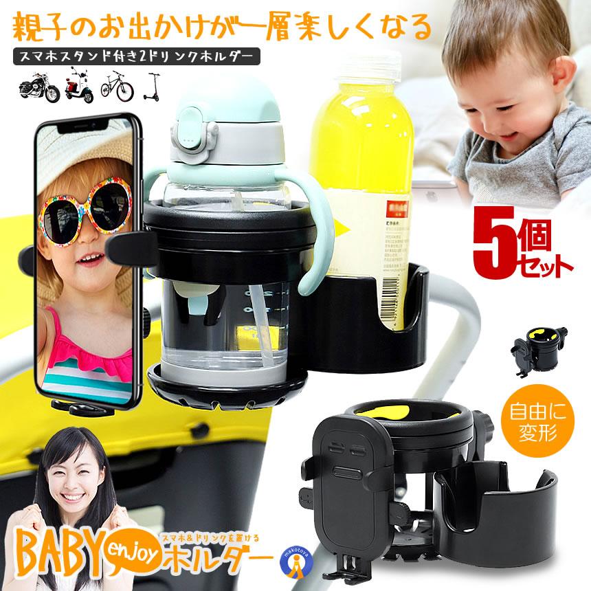 5個セット スマホ対応 ベビーカー ドリンクホルダー 2in1 自転車 カップホルダー 哺乳瓶 飲み物 ホルダー 3IN1STAN