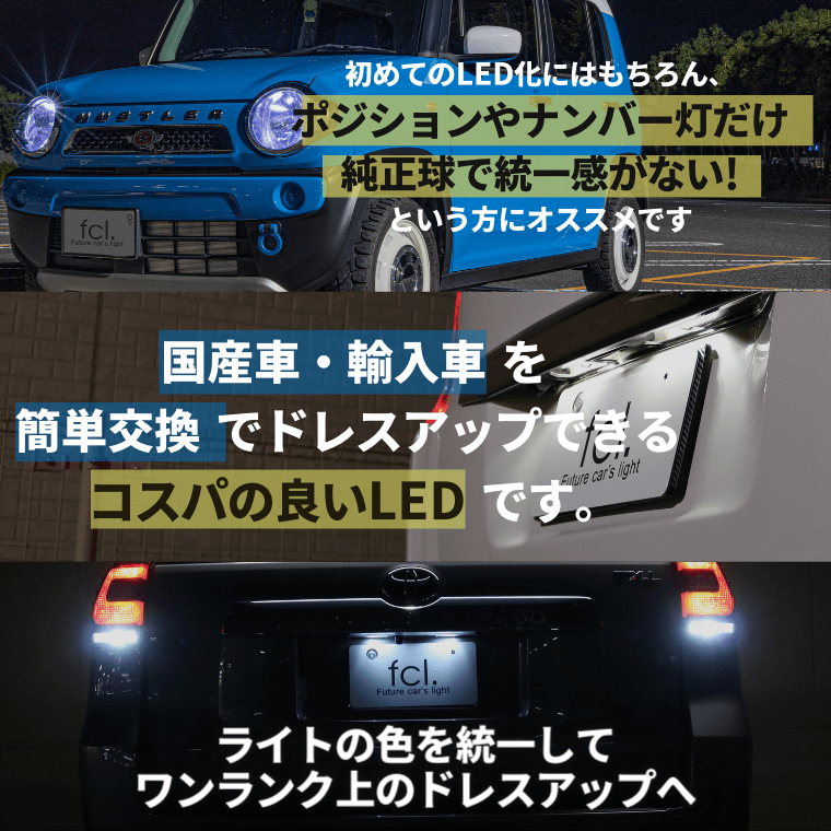 t10 ナンバー灯 led バルブ ポジション ポジションランプ ルームランプ ledルームランプ ホワイト 車検 対応 車検対応 スモールランプ ウェッジ 1年保証 無極性 fcl エフシーエル