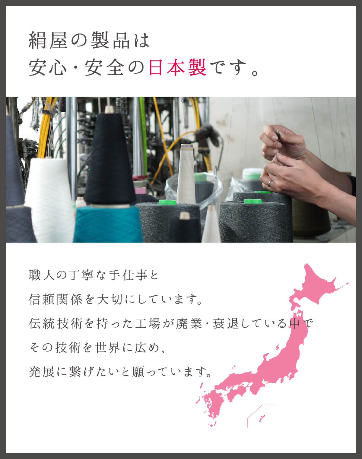 シルク90%、ポリエステル9%、ポリウレタン1%