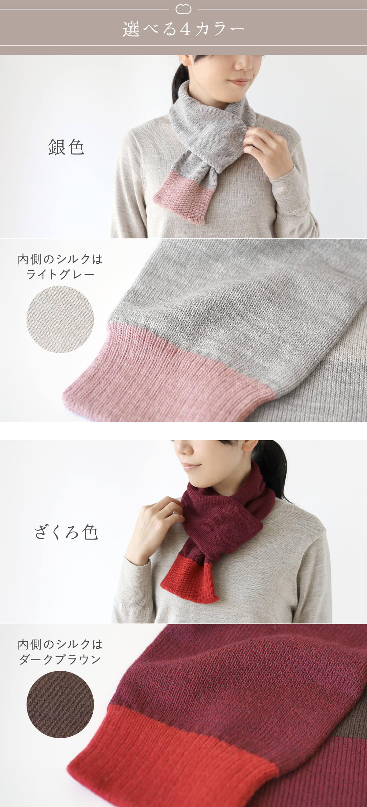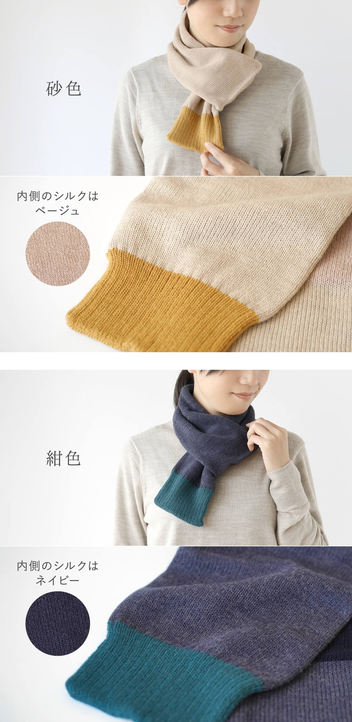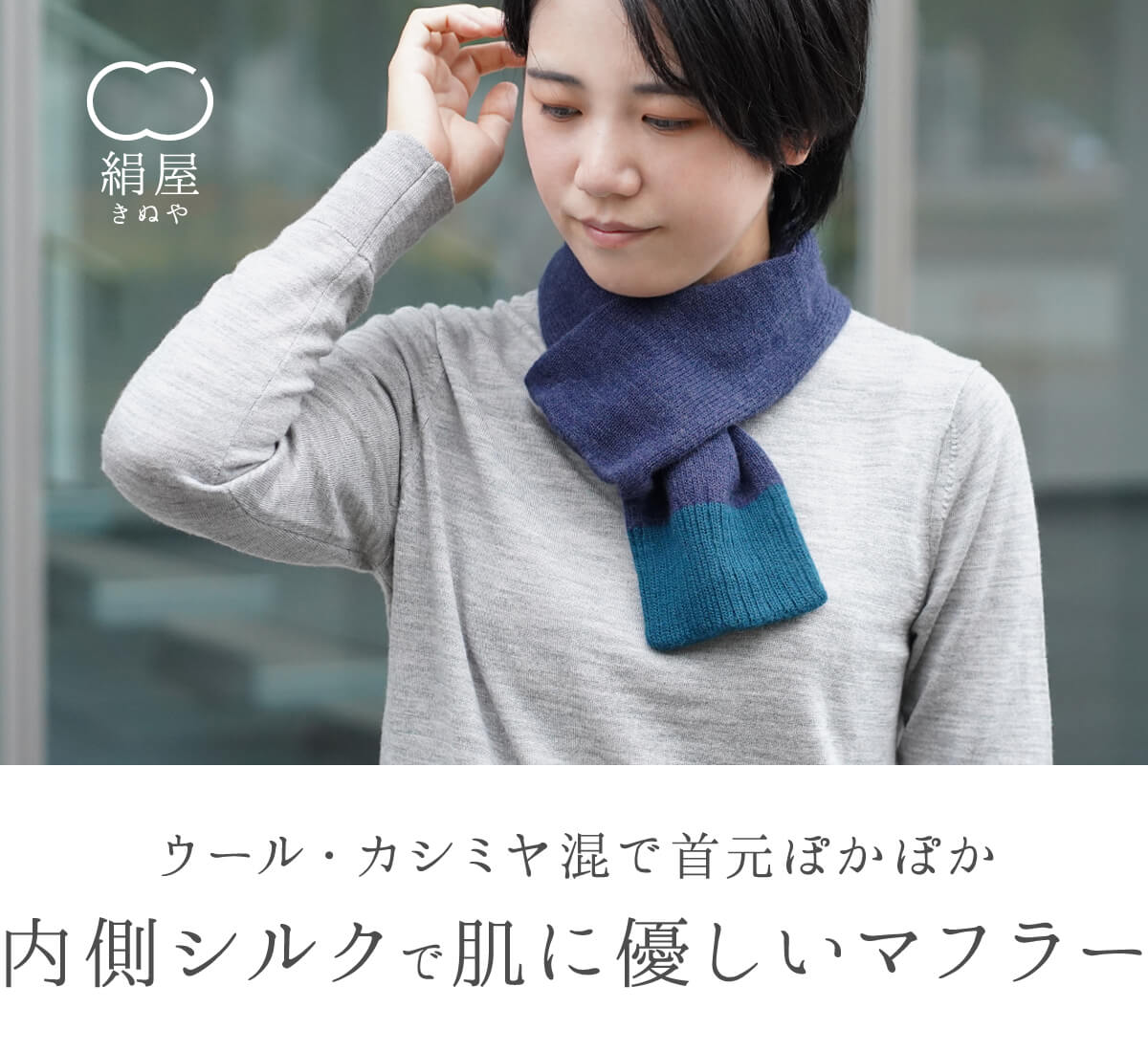 ミニマフラー レディース 内側シルク カシミヤ ウール 絹屋 日本製 2重編み 毛混 防寒