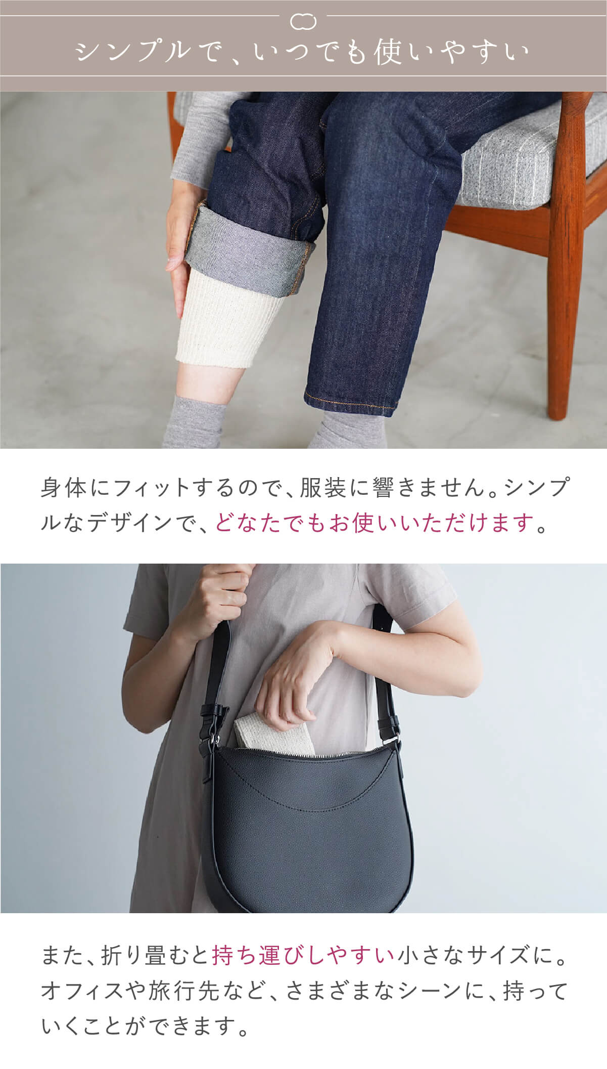 蒸れずに心地よく膝を温めます。
