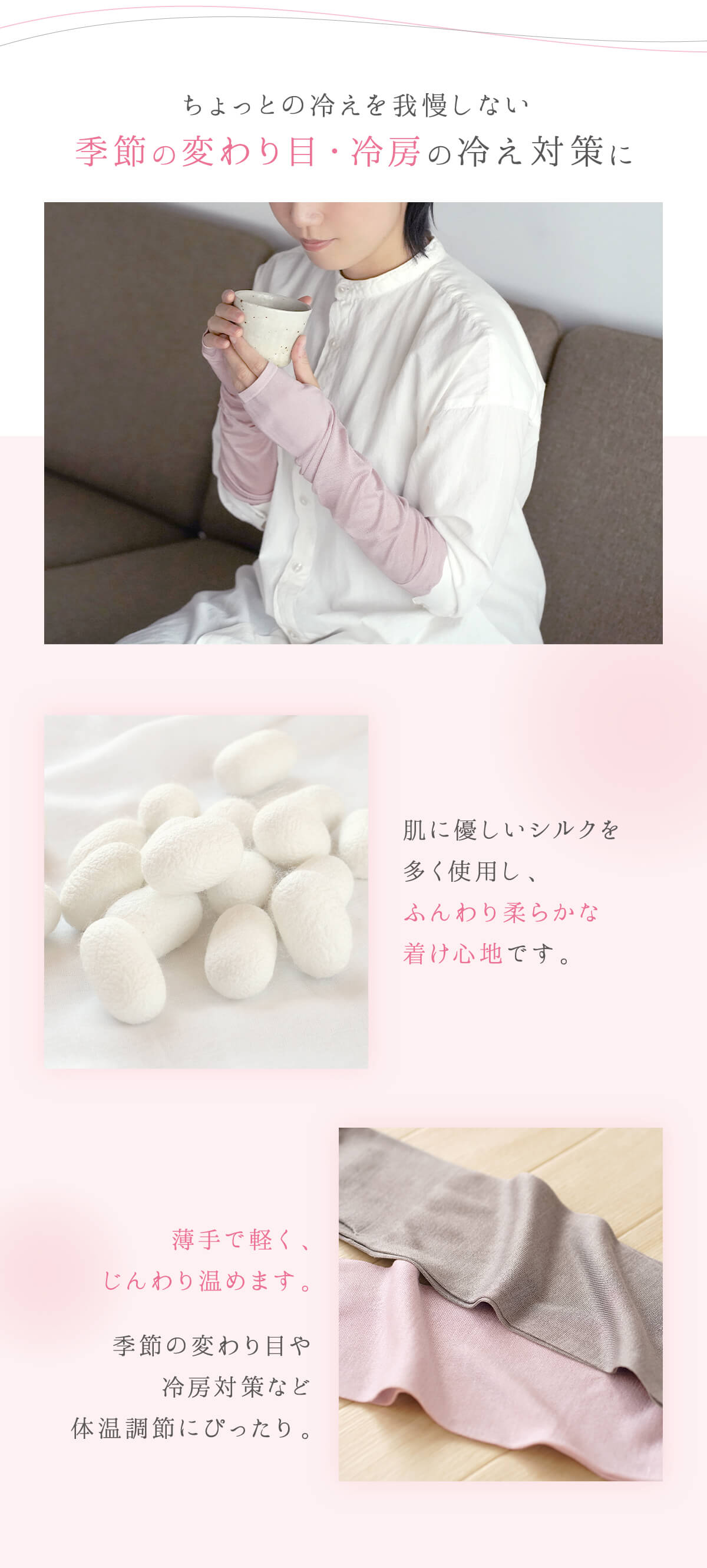 素材/材質:シルク82%、ナイロン11%、ポリエステル5%、ポリウレタン2% ※腕部分はシルク100%の糸を使用