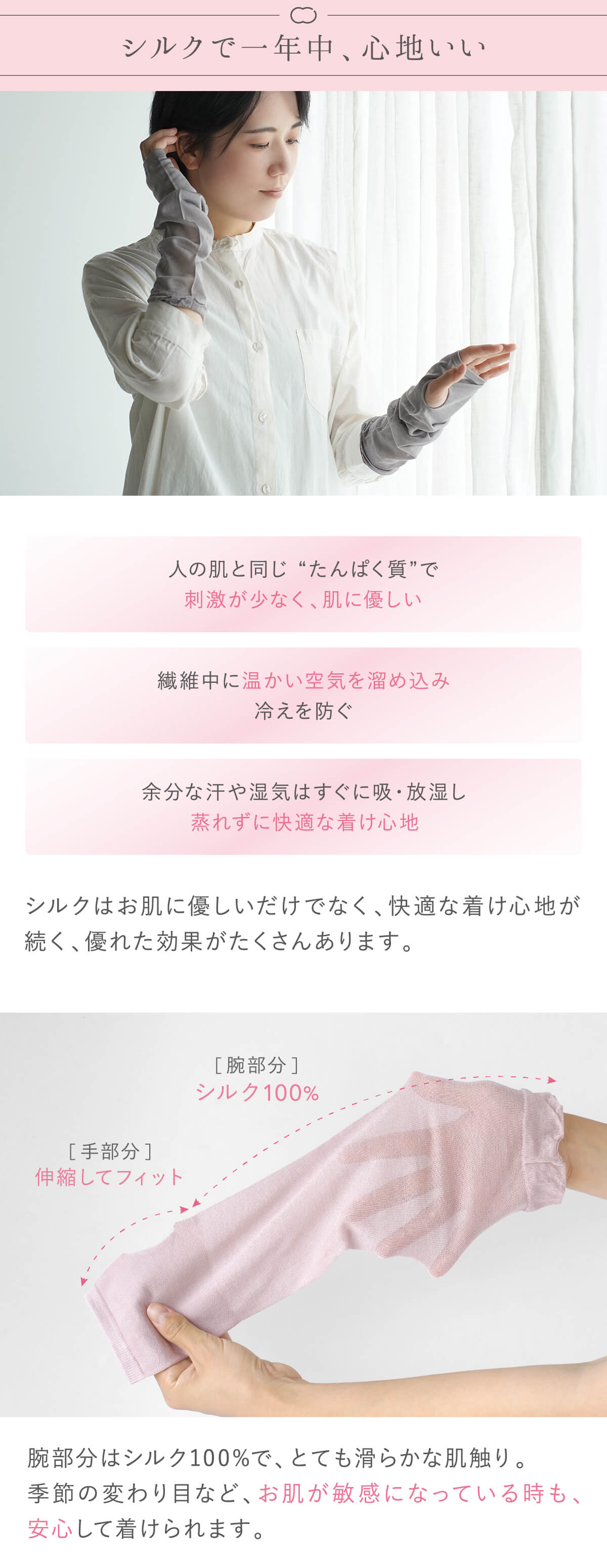 シルク ふんわりアームウォーマー シルク100% レディース 女性用 uvカット 手袋 ハンドウォーマー アームカバー 絹屋 日本製 ギフト